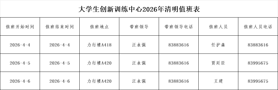 下一篇: 大学生创新训练中心2026年寒假值班表
